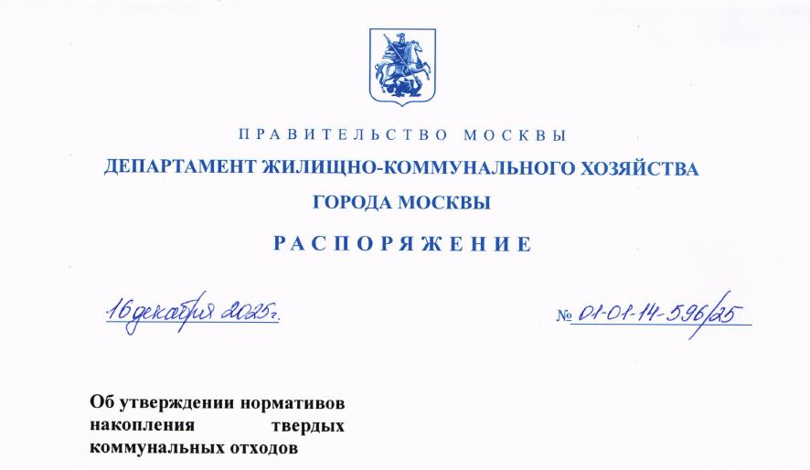 Норматив образования ТКО, утвержден распоряжением Департамента жилищно-коммунального хозяйства города Москвы от 29.09.2021 №_01-01-14-194/21 (Приложение № 3).